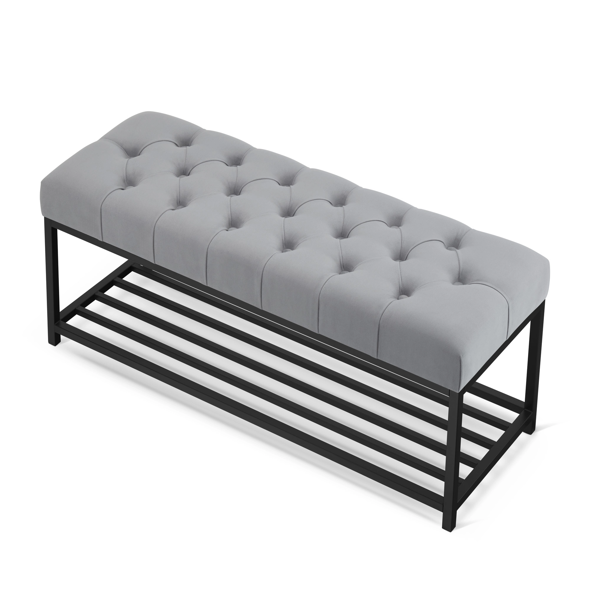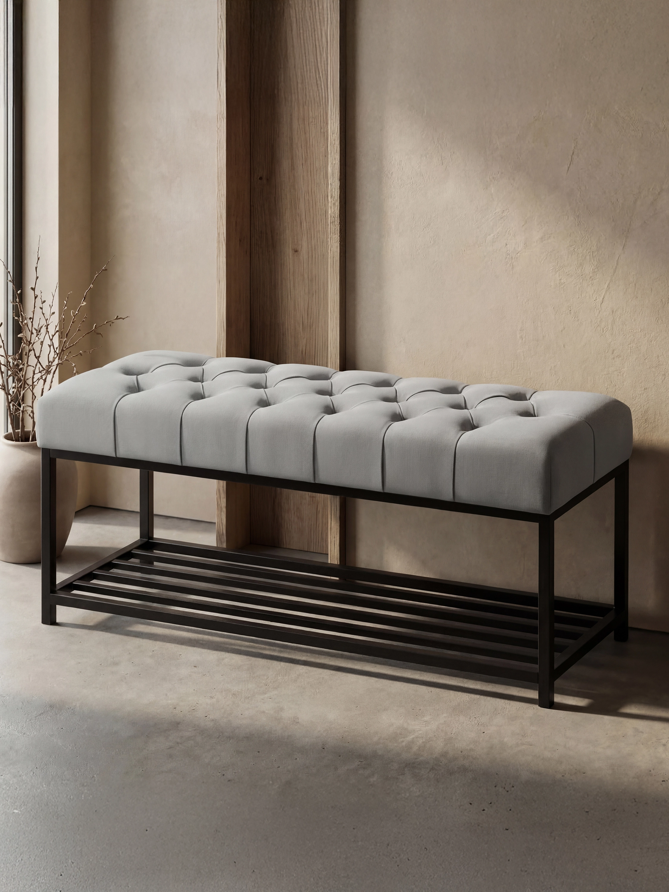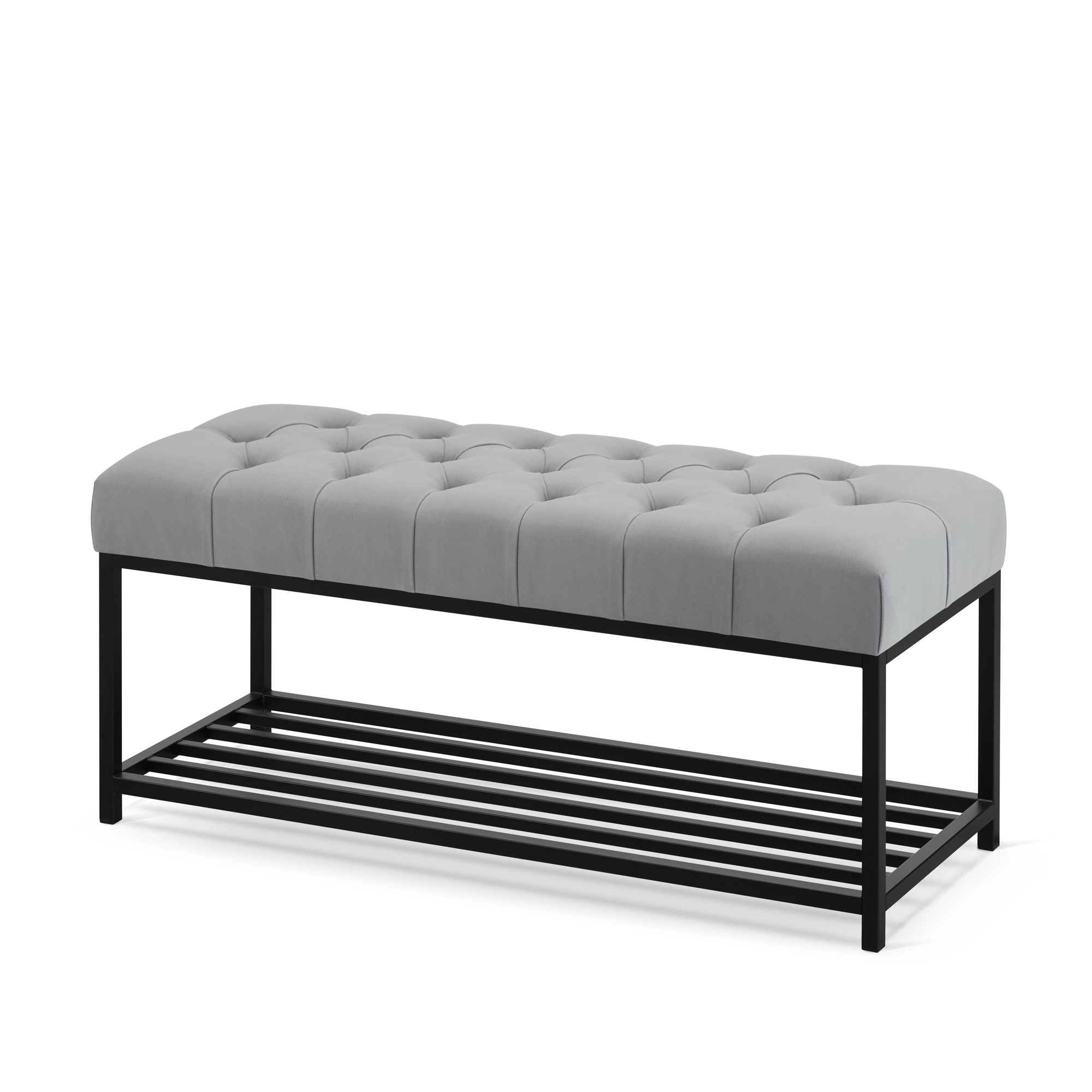 Ławka z półką na buty i pikowanym siedziskiem, która łączy funkcjonalność z bardziej dopracowanym wyglądem. Praktyczna półka pomaga uporządkować obuwie, a miękkie, pikowane siedzisko zwiększa komfort użytkowania. Sprawdzi się w przedpokoju, garderobie lub sypialni, dopasowując się do różnych przestrzeni.