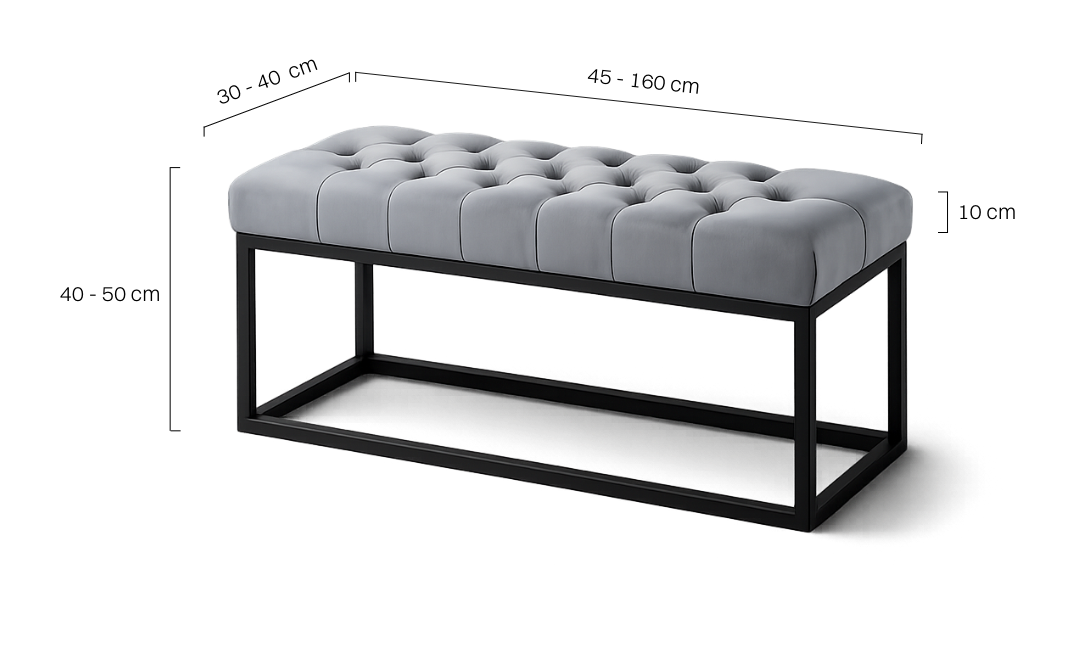 Ławka doskonale sprawdzi się w przedpokoju, sypialni lub salonie jako wygodne miejsce do siedzenia. Model można dopasować do własnych potrzeb poprzez wybór rozmiaru oraz tkaniny, tworząc mebel idealnie wpisujący się w charakter wnętrza.