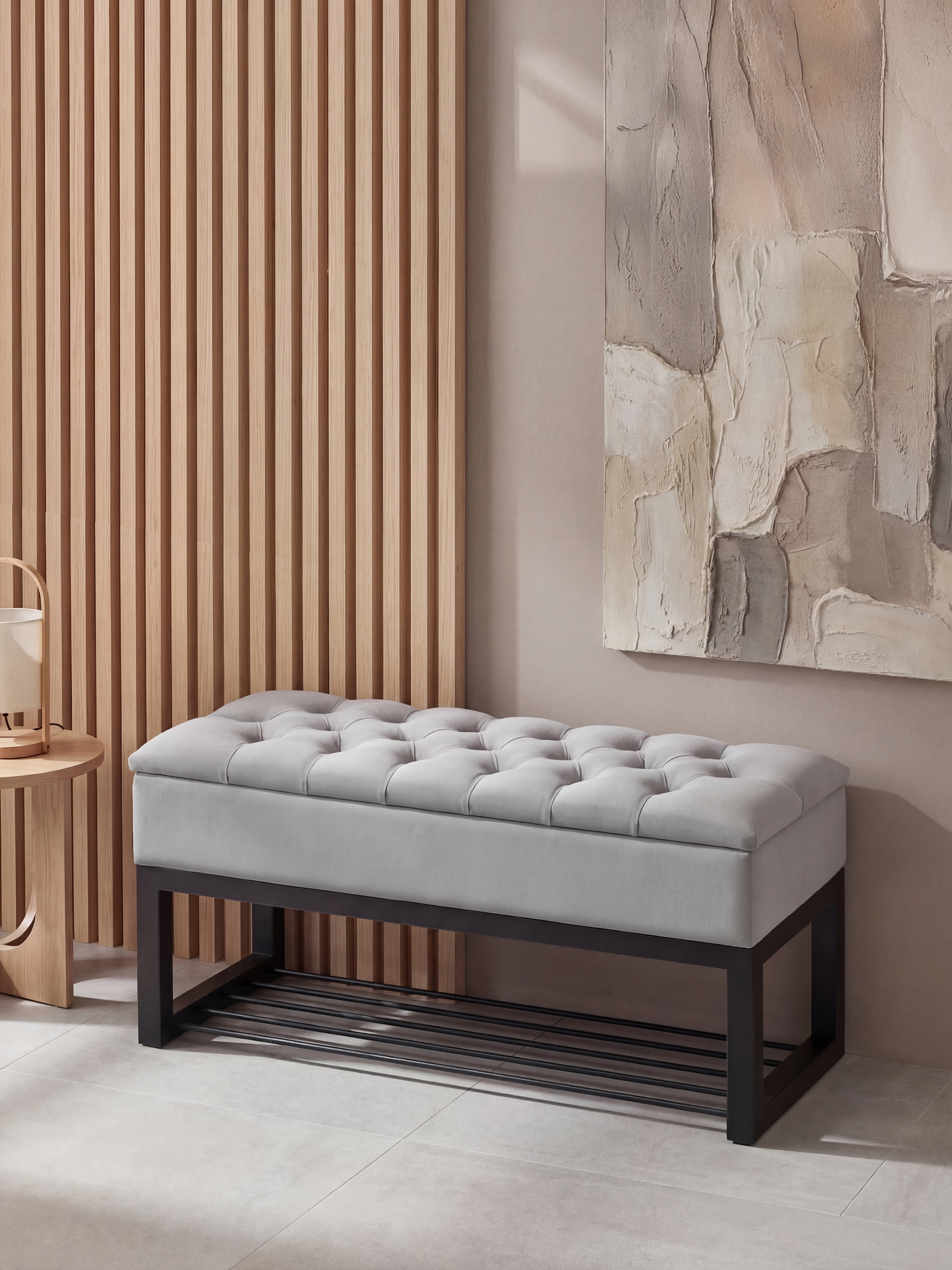 LOFT Blanca to pikowana pufa ze schowkiem zaprojektowana z myślą o wnętrzach, w których liczy się funkcjonalność i wyrazisty styl. Połączenie miękkiego, tapicerowanego siedziska z metalową podstawą nadaje meblowi nowoczesny, industrialny charakter, który doskonale odnajduje się w przedpokoju, sypialni lub salonie.