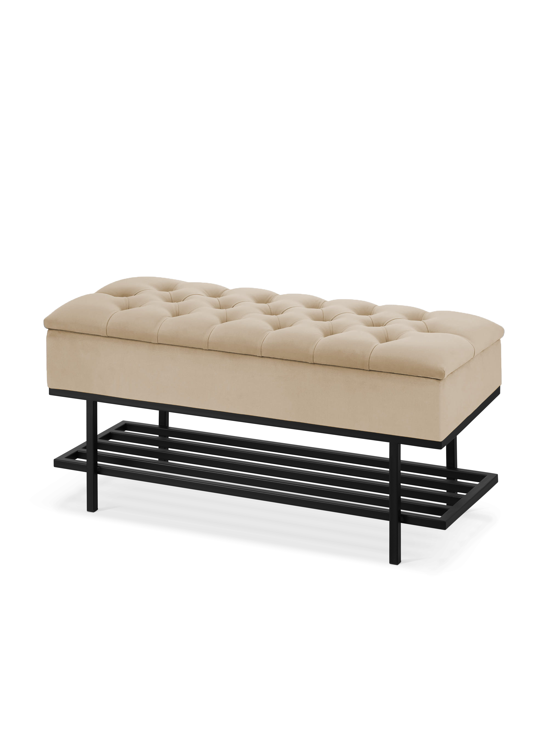 Pikowana pufa ze schowkiem LOFT Latte łączy miękkie pikowane siedzisko z industrialną konstrukcją na metalowych nogach. Ciepły odcień latte wprowadza do wnętrza przytulność i elegancję, a ukryty schowek pozwala uporządkować codzienne drobiazgi. To funkcjonalny mebel, który dobrze sprawdzi się w przedpokoju, sypialni lub salonie.