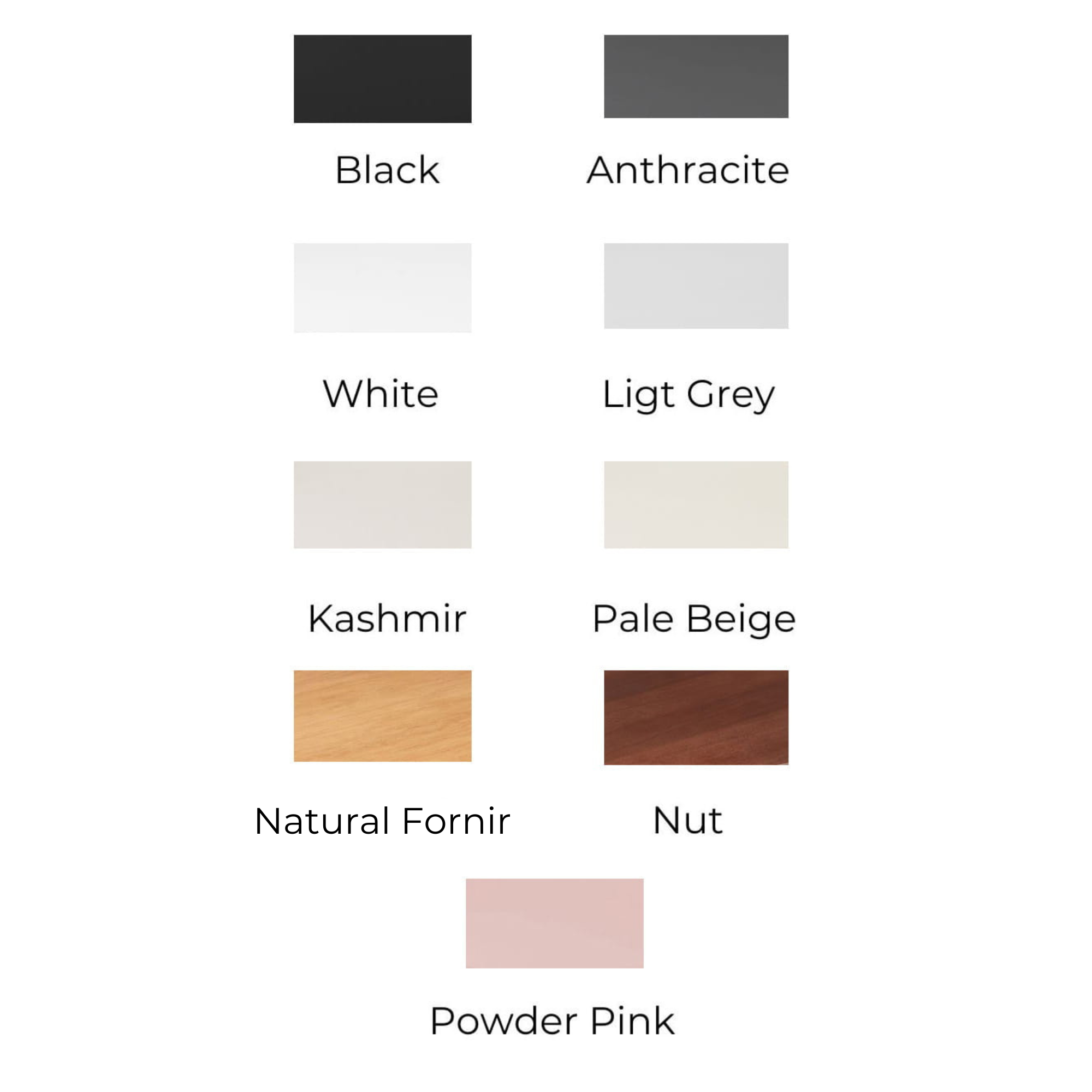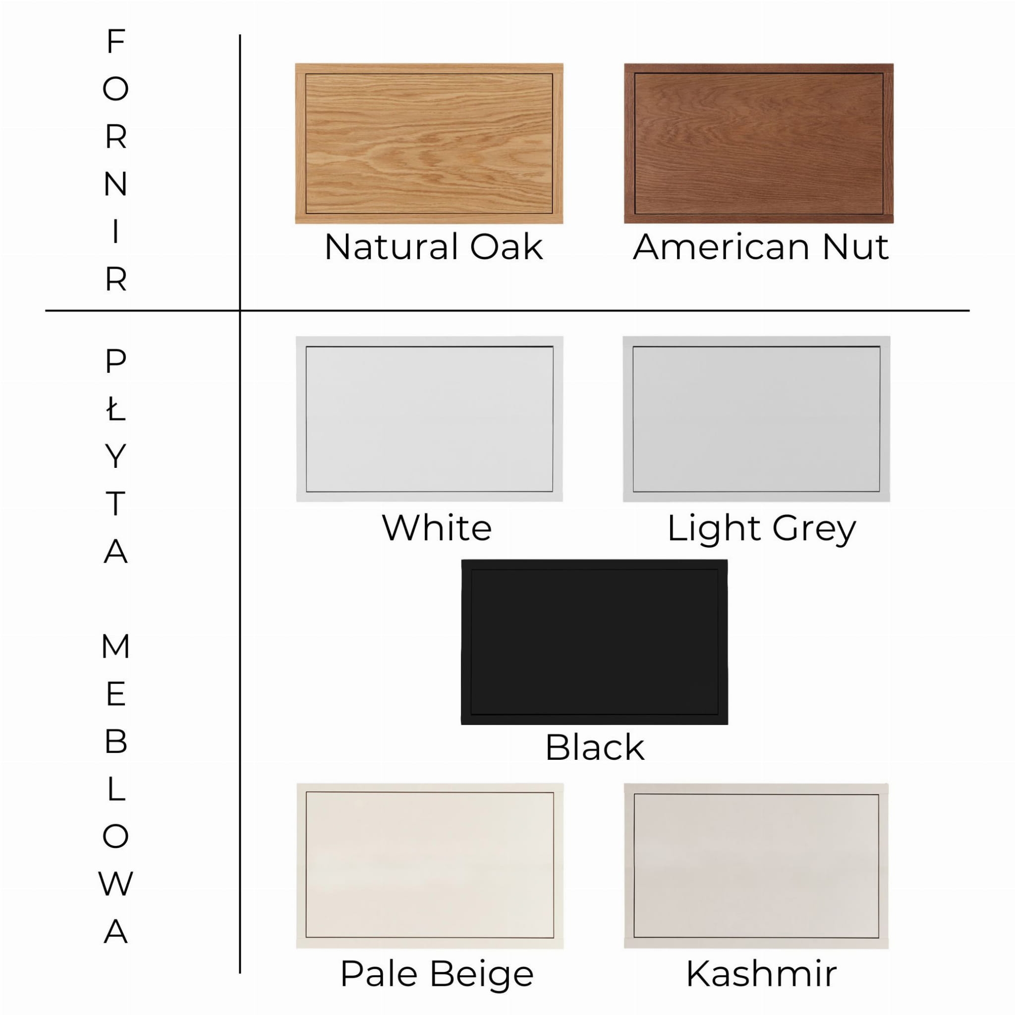Próbka koloru mebla została przygotowana z myślą o osobach, które chcą dokładnie sprawdzić wybrane wykończenie przed zamówieniem mebla. Kolory widoczne na ekranach komputerów i telefonów mogą różnić się od tych, które widzimy na żywo – wpływ na to mają ustawienia monitora, jakość wyświetlacza oraz oświetlenie w pomieszczeniu.