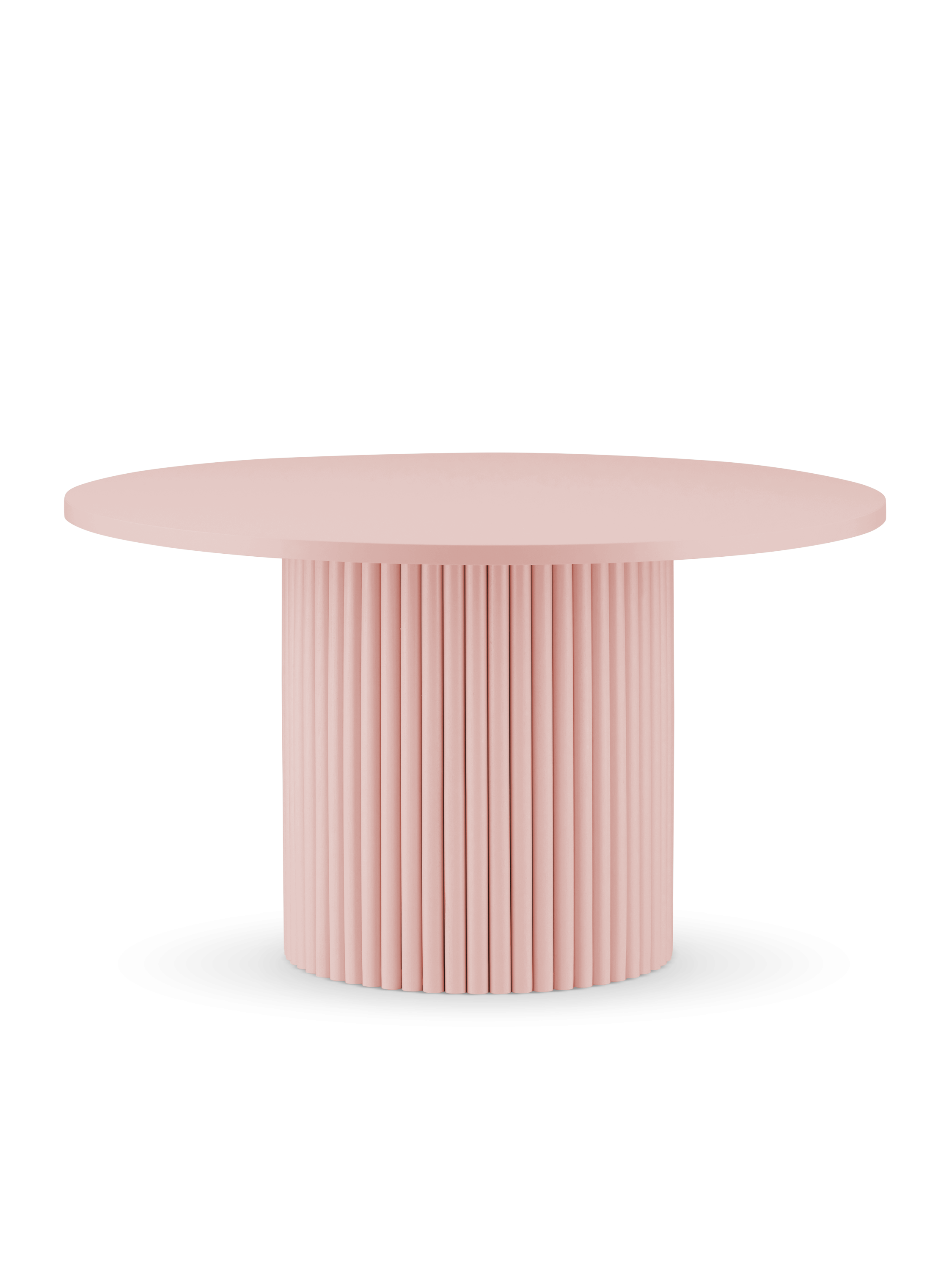 Stolik kawowy okrągły Pink Gravura to stylowy mebel zaprojektowany z myślą o nowoczesnych i eleganckich wnętrzach. Charakterystycznym elementem projektu jest dekoracyjna podstawa z pionowym ryflowaniem, która nadaje stolikowi wyrazisty, architektoniczny wygląd. W połączeniu z okrągłym blatem tworzy spójną formę, która może stać się centralnym elementem aranżacji salonu.