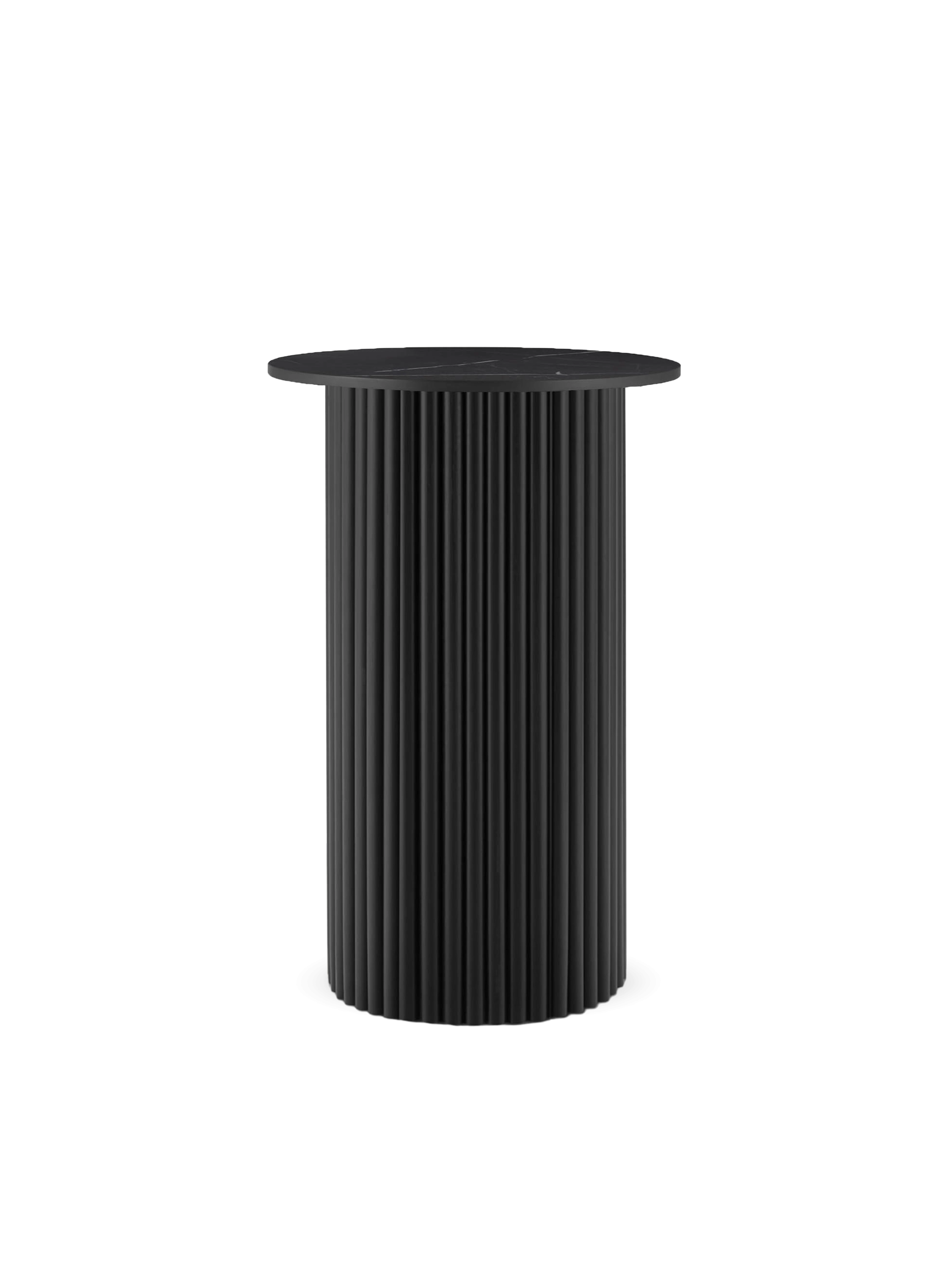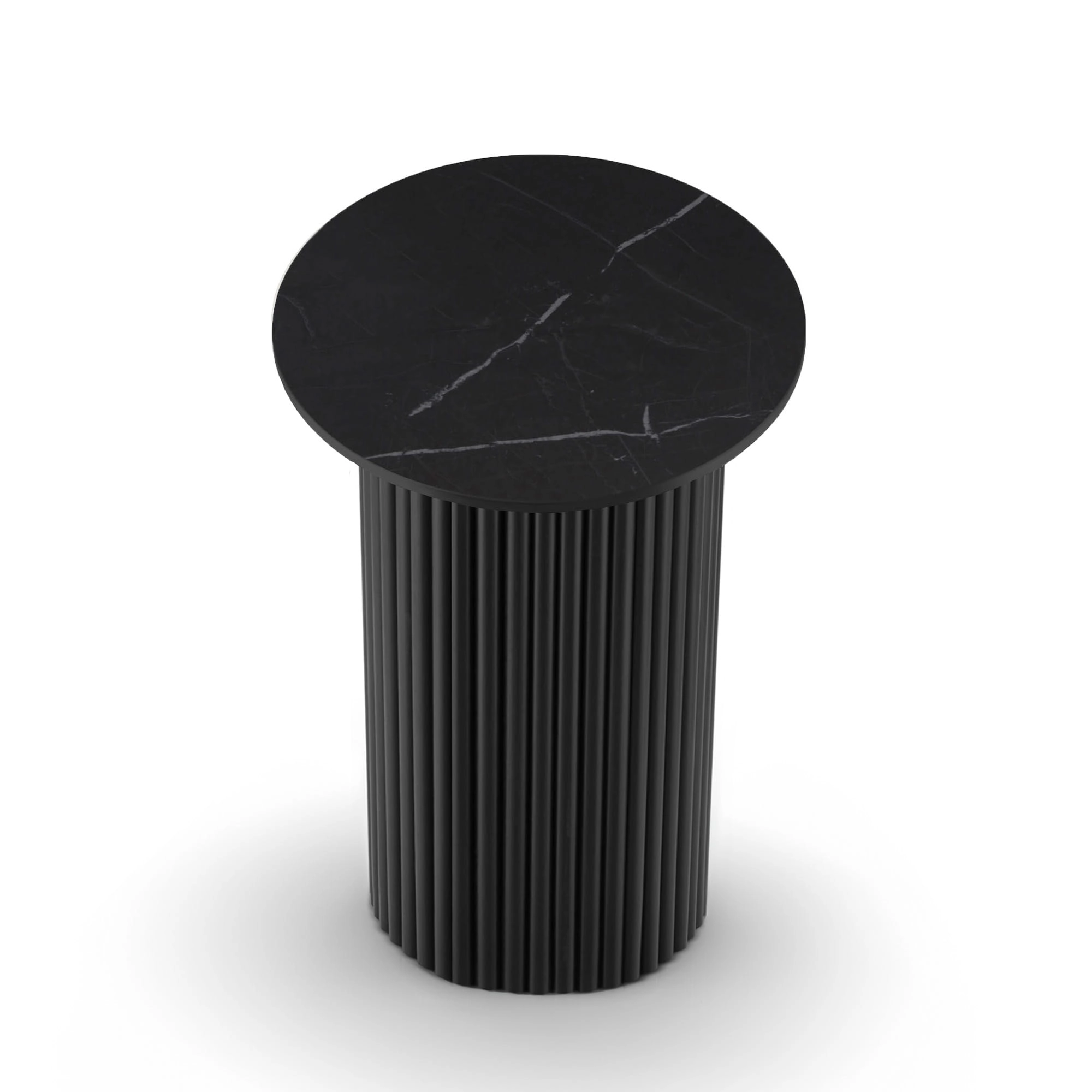 Stolik pomocniczy Nero – elegancja kamiennego blatu i dekoracyjnej ryflowanej podstawy w nowoczesnej formie.
