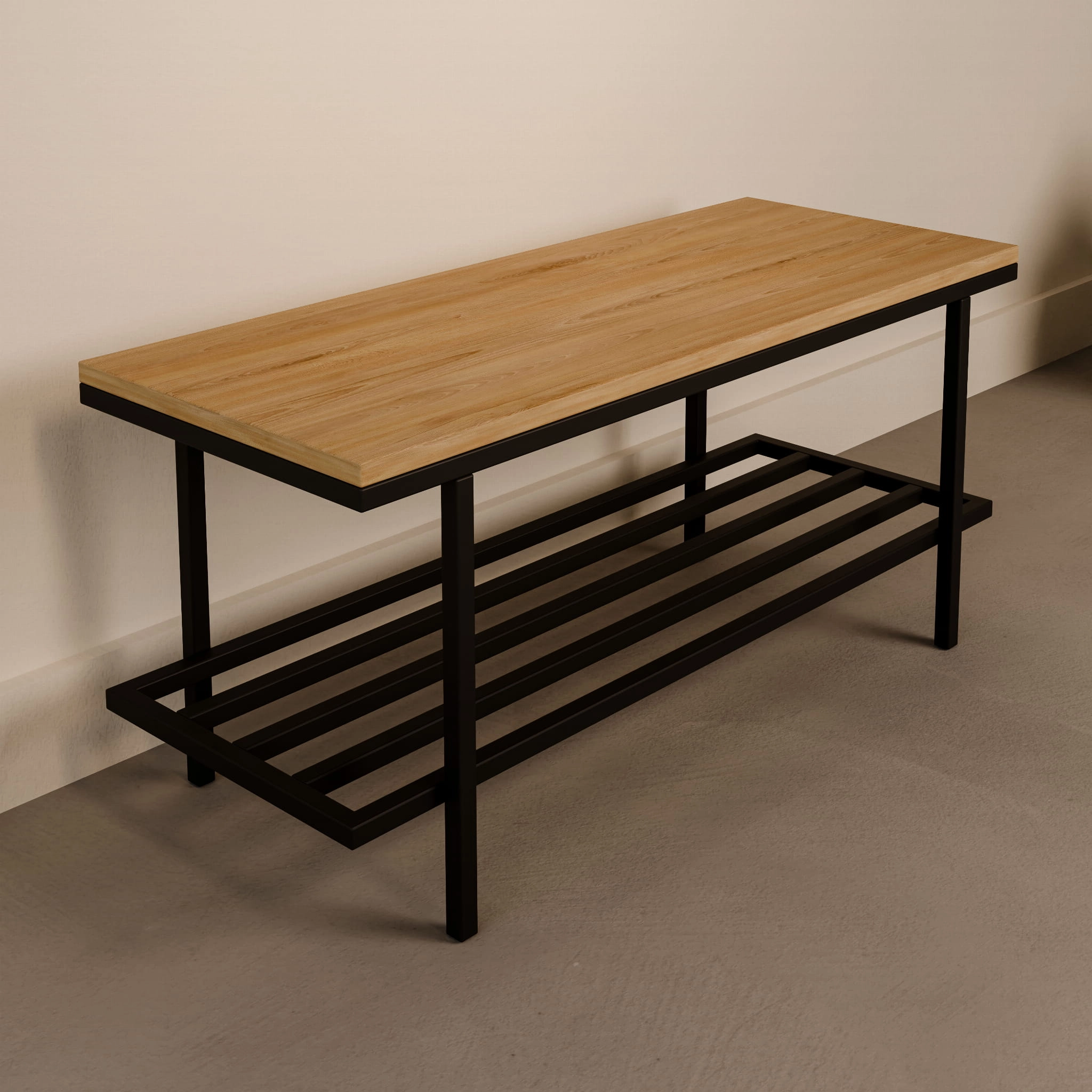 Ławka industrialna Oak Crest WOOD doskonale sprawdzi się w przedpokoju jako wygodne miejsce do zakładania butów, ale równie dobrze może pełnić funkcję siedziska w sypialni, salonie czy garderobie. Prosta forma sprawia, że łatwo dopasować ją do różnych aranżacji wnętrz.