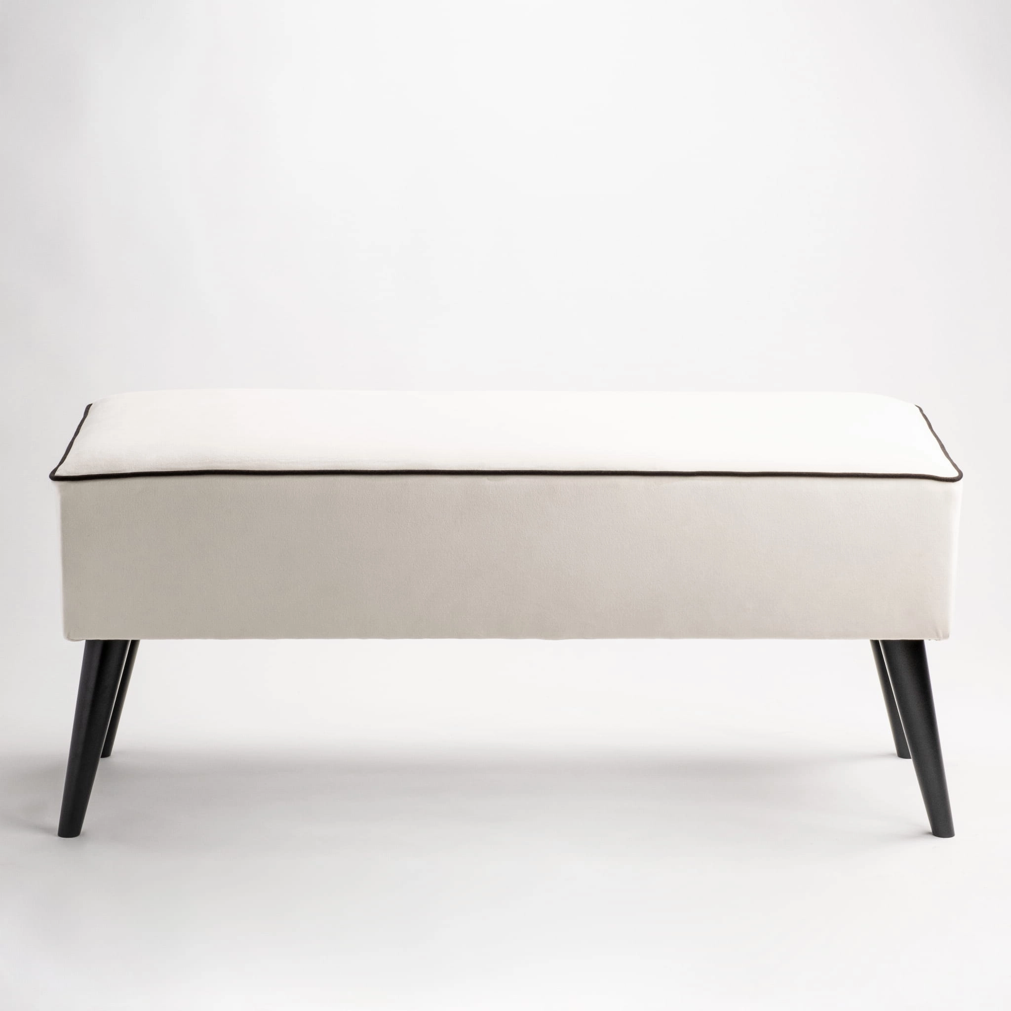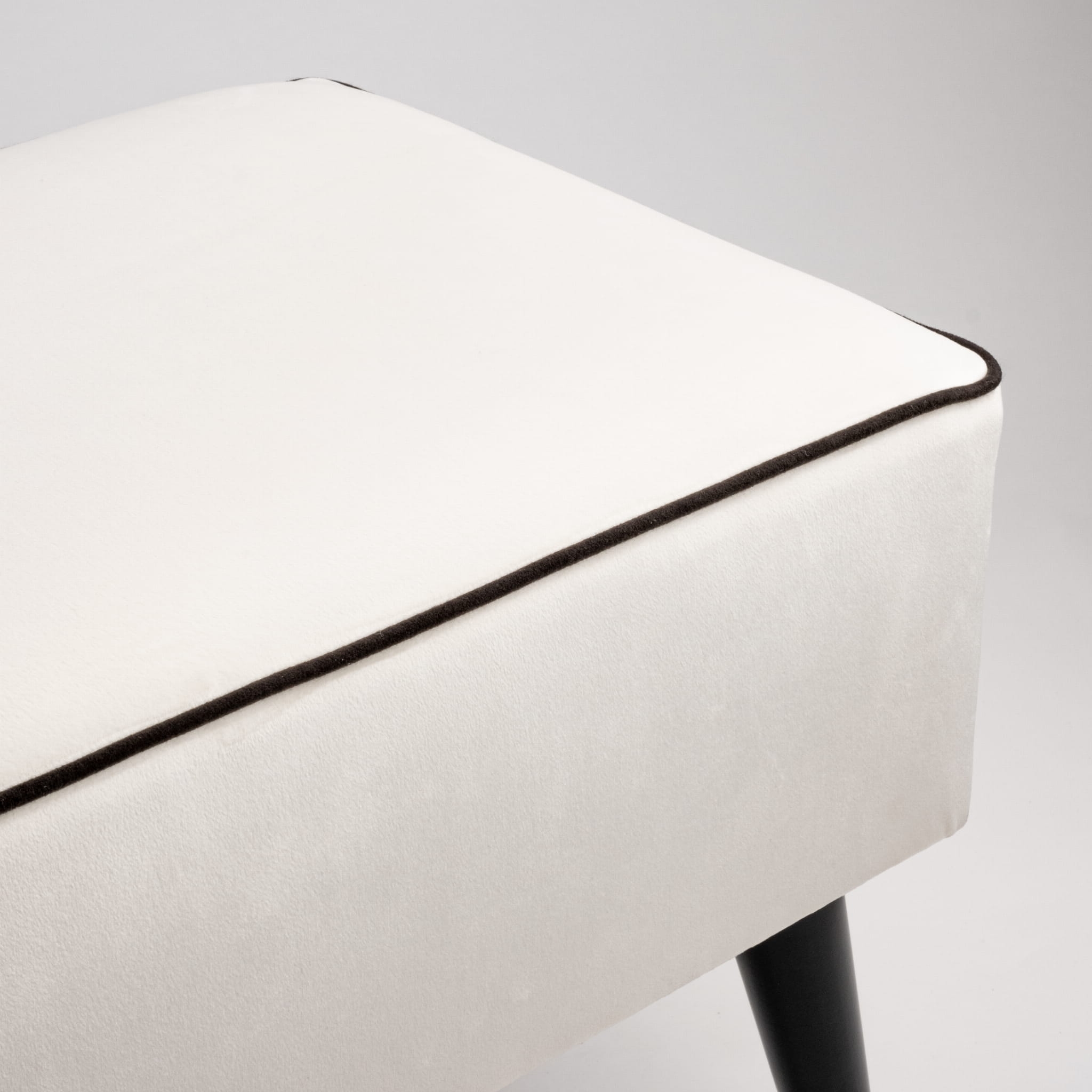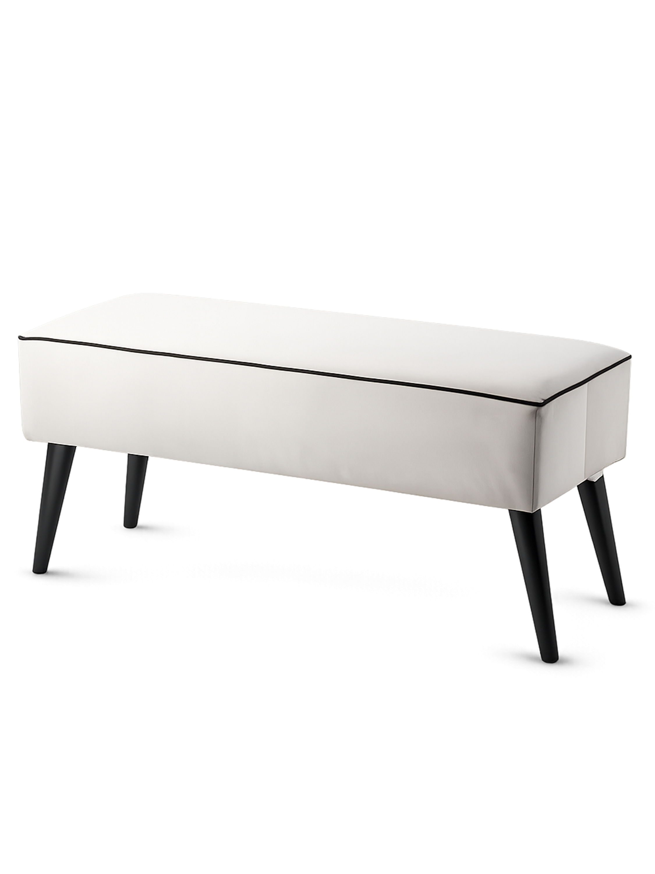 Model można spersonalizować poprzez wybór rozmiaru, rodzaju tkaniny oraz wykończenia nóg, tworząc ławkę idealnie dopasowaną do stylu wnętrza.